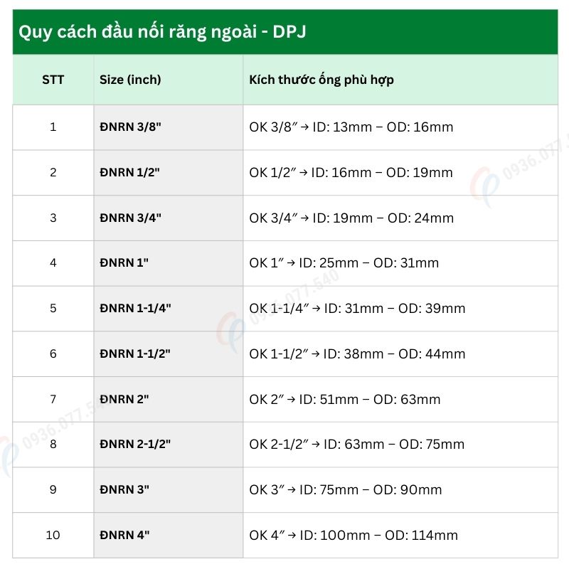 Đầu nối răng ngoài DPJ (Flexible Conduit Connector – Male Type)