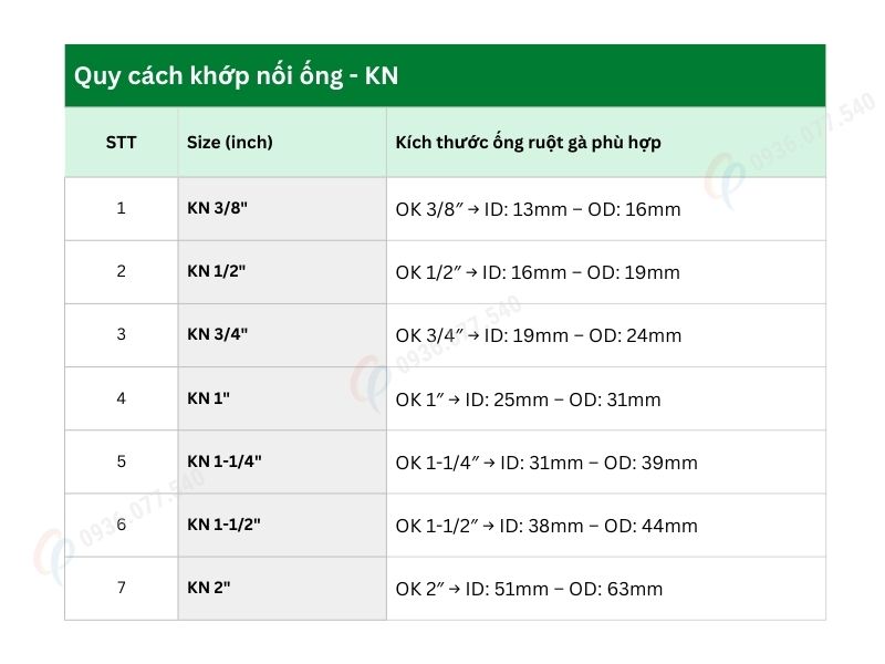 Quy cách khớp nối ống ruột gà DGJ (KN)
